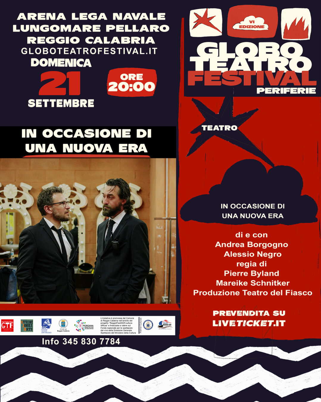 Con la regia del grande maestro Pierre Byland, assistito da Mareike Schnitker, il Globo Teatro Festival ospita Andrea Borgogno e Alessio Negro in un nuovo allestimento dello spettacolo In Occasione di Una Nuova Era.